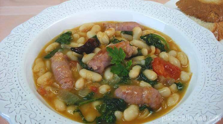 Guiso de alubias con salchichas y Ensalada criolla