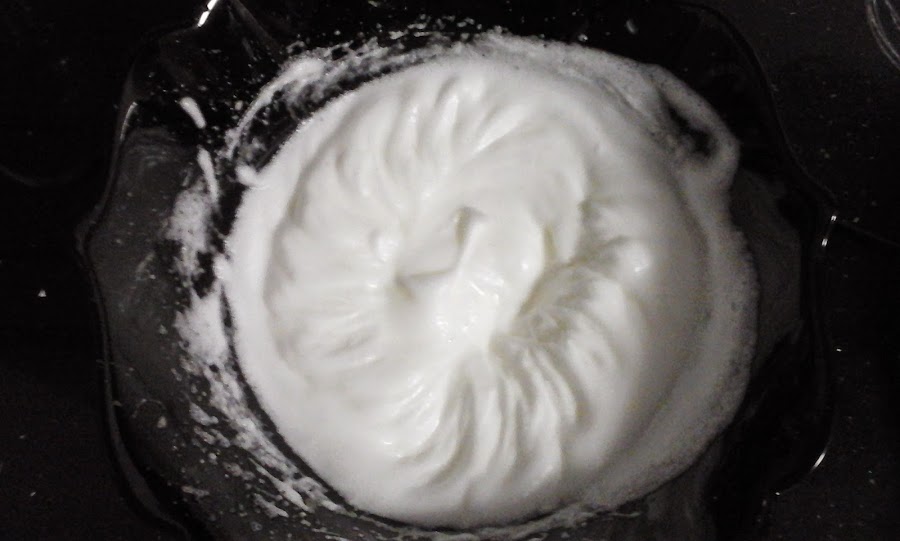 Precalentamos el horno a 190º. Separamos las claras de las yemas. Las yemas las dejamos para otra preparación, mientras que las claras las montamos a punto de nieve. Cuando están casi montadas comenzamos a echar el azúcar poco a poco para que no se nos bajen.