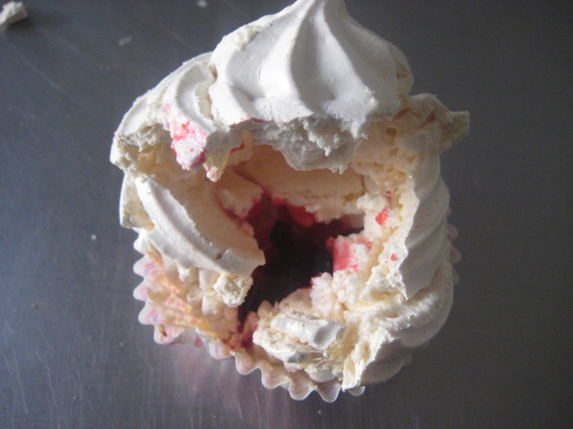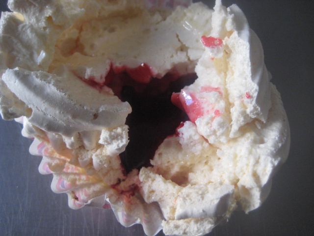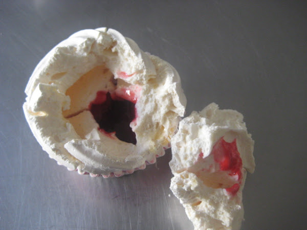 Preparación: Poner en un cazo el agua, el limón o vinagre y el azúcar y dejar cocer suavemente hasta que alcance los 120º C o el punto de bola flojo. Ir retirando con una espumadera las impurezas del azúcar y mojar de vez en cuando las paredes con un pincel mojado para evitar cristales de azúcar. Una vez obtenido el almíbar, batir las claras a punto de nieve con el crémor tártaro (si no se tiene se añade una pizca de sal) e ir agregando el almíbar. Dejar batir hasta que el merengue pierda temperatura y coja consistencia. Mientras tanto calentar un poco el bote de mermelada de frambuesa en un cazo con una cucharada sopera de agua y una vez calentito pasar por un colador para retirar las pepitas. Hidratar la hoja de gelatina en agua y cuando esté bien hidratada diluir en la mitad de la mermelada colada y mezclar con el resto. Añadir la pasta de frambuesa Home Chef y mezclar bien. Poner en una manga pequeña sin boquilla y reservar. Una vez que el merengue esté hecho, deberá quedar muy blanco y brillante; ya está listo para emplear. Poner el merengue en manga pastelera con boquilla rizada gruesa y sobre una cápsula de cupcakes poner una base, luego añadir una pequeña cantidad en el centro de la mermelada de frambuesa y seguidamente tapar con más merengue haciendo una buen roseta gruesa y alta. Así todos preparados, poner las cápsulas ya llenas en moldes de cupcakes y cocer en el horno a 95 º C durante unas dos horas. Más que cocer los merengues se trata de que se vayan secando y quede una gruesa capa crujiente y el interior tiernecito. Sacar del horno y dejar enfriar totalmente antes de consumir.