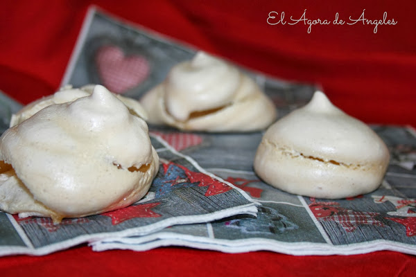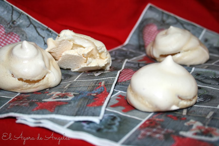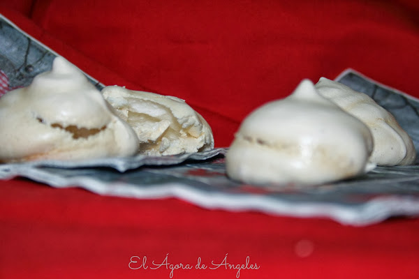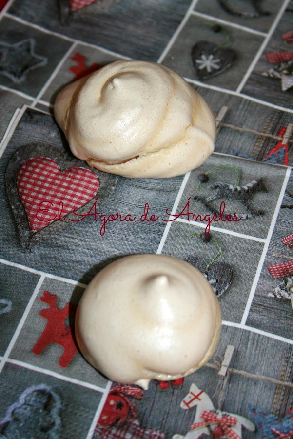 Horneamos una hora a temperatura media-baja;yo lo hice a 120º aunque he visto recetas que bajan hasta los 90º.Vosotros conocéis vuestro horno.Es fundamental que no tomen color, a mi me gustan verlos bien blanquitos y se me pasaron un minutín.