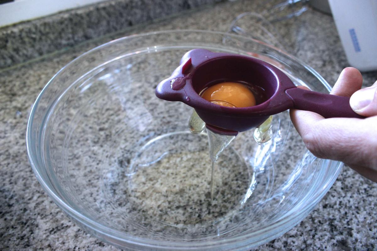 2 claras de huevos, 100 gramos de azúcar y una cucharada de vinagre de manzana.