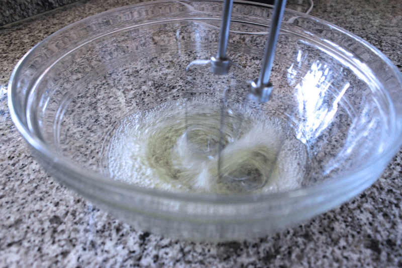 Cuando esté un poco firme, le agregaremos una cucharada de vinagre, esto le dará firmeza al merengue.