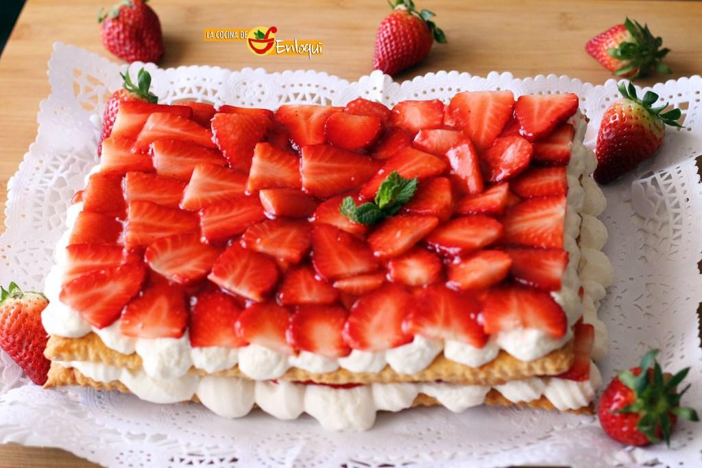 Tarta de fresas con nata (crema de leche) en hojaldre