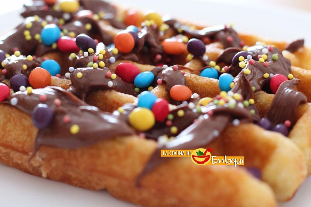 Gofres con nutella y mini Lacasitos