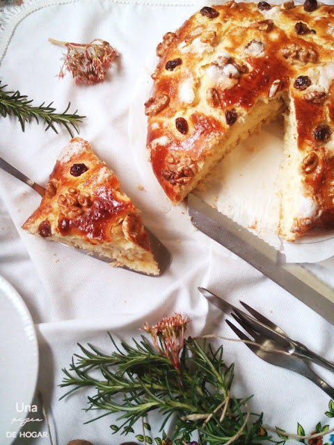Y como a la vuelta de la esquina tenemos la semana santa no puede faltar una buena coca de nueces y pasas en las meriendas pascueras.Maribel en Una pizca de hogar nos da unos consejos para preparar la coca de pasas y nueces.
