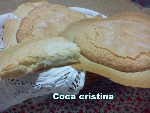 Desde mi cocina unas cocas cristinas muy arraigadas en nuestra tierra.Son unas cocas individuales de un centímetro de grosor más o menos que se elaboran con almendra sobre una oblea o papel de ángel.