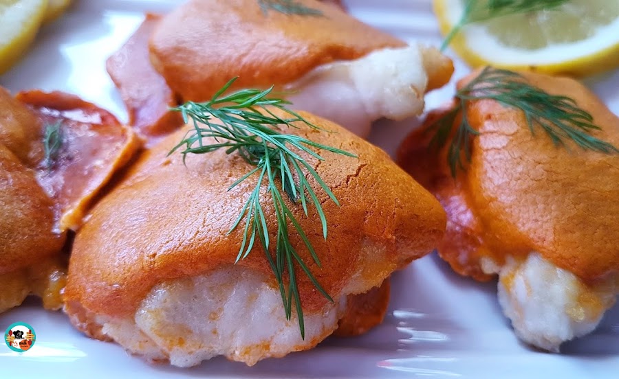 lomos de merluza gratinados con mayonesa de pimentón