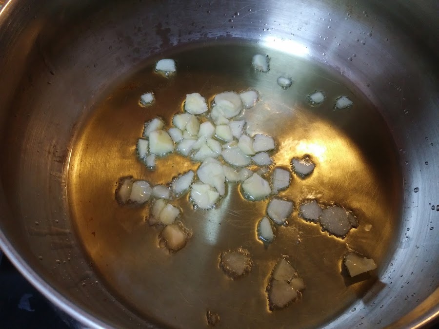 En una cacerola amplia vamos a poner aceite y a rehogar los ajos en rodajas.