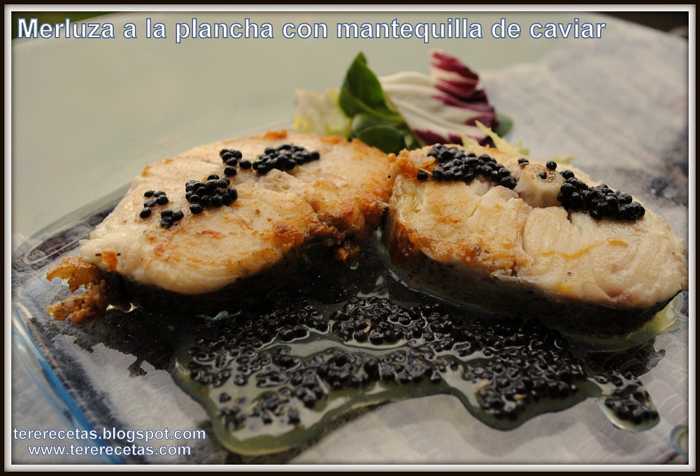 Pon a derretir a fuego bajo la mantequilla, le puedes echar una pizca de finas hierbas, una vez derretida echas dos cucharaditas de caviar y dejas cocinar por un par de minutos.