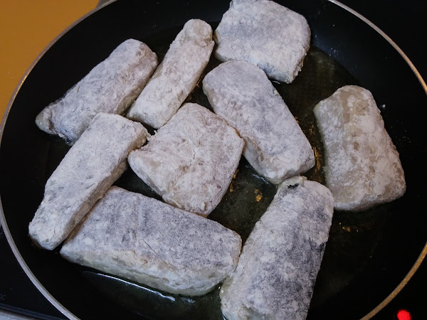 Lo primero que vamos a hacer es salar y pasar por harina los lomos y los vamos a dorar en una sartén con aceite. No hace falta que se hagan del todo. Reservamos.