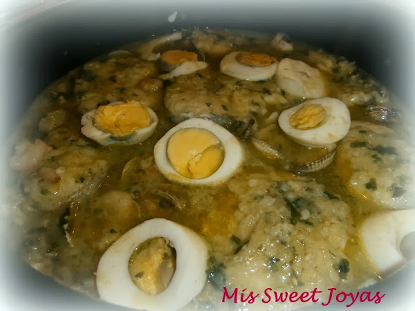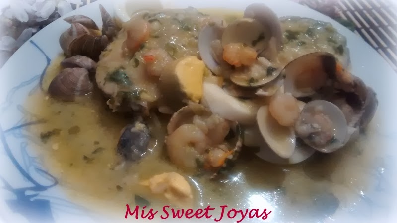 Y el último paso son añadir las gambas y las almejas, las dejamos 5 minutos y listo.