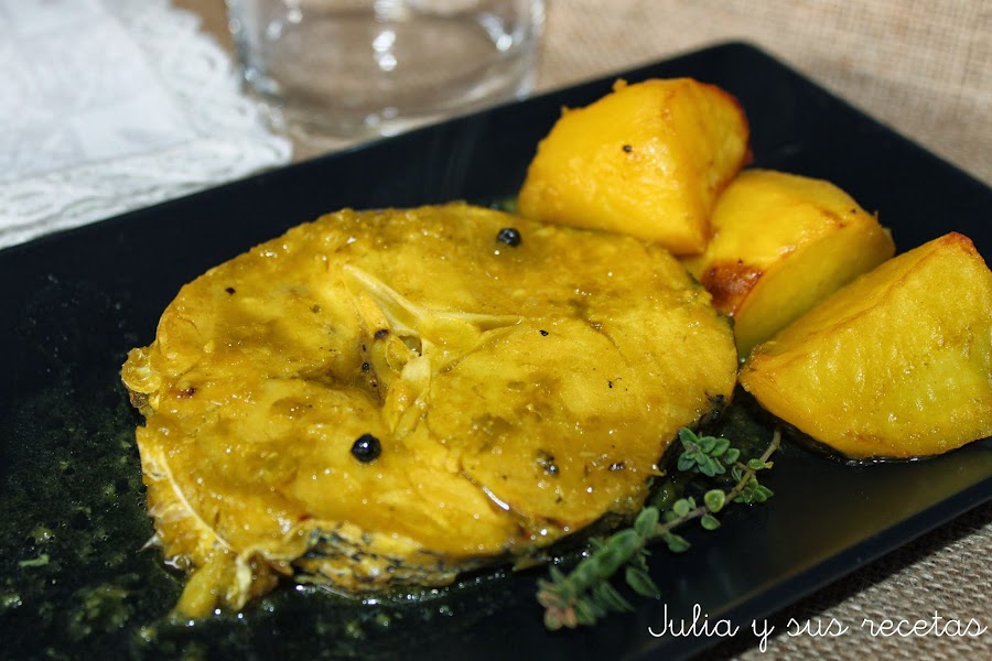 Con unas patatas como guarnición hechas a la vez que la merluza e impregnadas de todo su sabor está muy rica, seguro que os gustará. Es una buena opción para todos aquellos que no coman carne durante la cuaresma.
