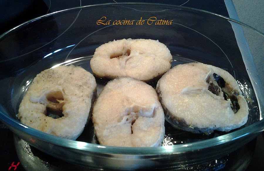 Pasar el pescado por la harina y freírlo en una sartén con el aceite a fuego medio, durante 3 minutos por cada lado. Salpimentar, retirar del fuego y ponerlo en una fuente de hornear.