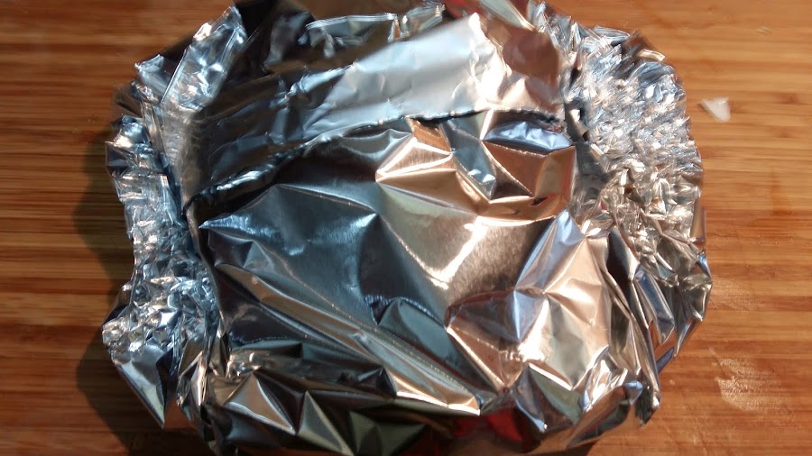 Lo colocamos en un trozo de papel de plata grande y de la siguiente manera: