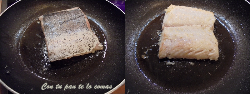 3. Dora el pescado a fuego fuerte, vuelta y vuelta (unos 30 segundos por cada lado nada más). Colócalo encima de la bechamel.
