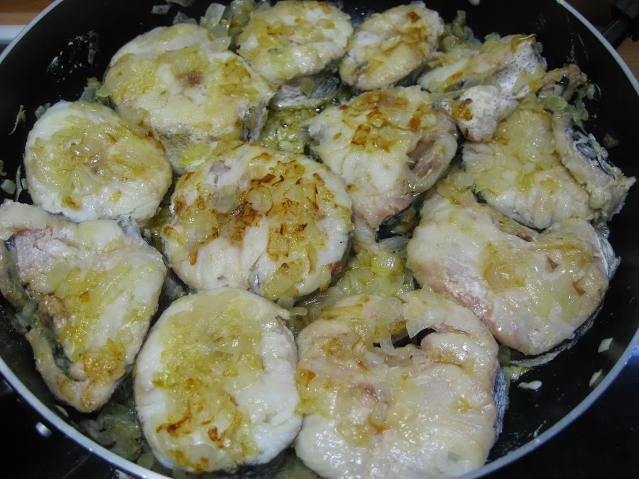 1 Merluza cortada a rodajas, más o menos de unos 2,5cm.