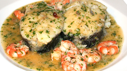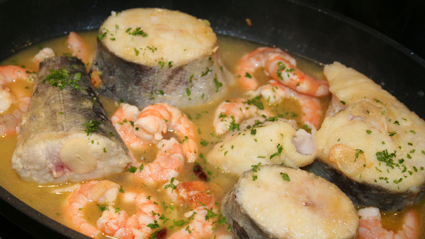 Caldo de pescado -puedes usar uno comprado o prepararlo tú con los restos de merluza y de langostinos y alguna verdura.
