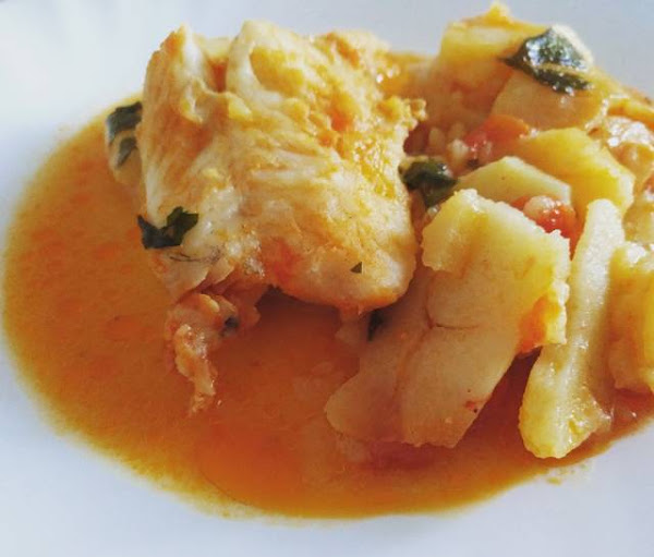 Lavar los lomitos de merluza e incorporarlos al guiso, espolvorear con el perejil picado, mientras en un mortero se añade un diente de ajo, una cucharada de limón, aceite de oliva, una pizca de nuez moscada, una pizca de pimentón y sal, majalo e incorporarlo al guiso, rectificar de sal dejar un par de minutos y listo.