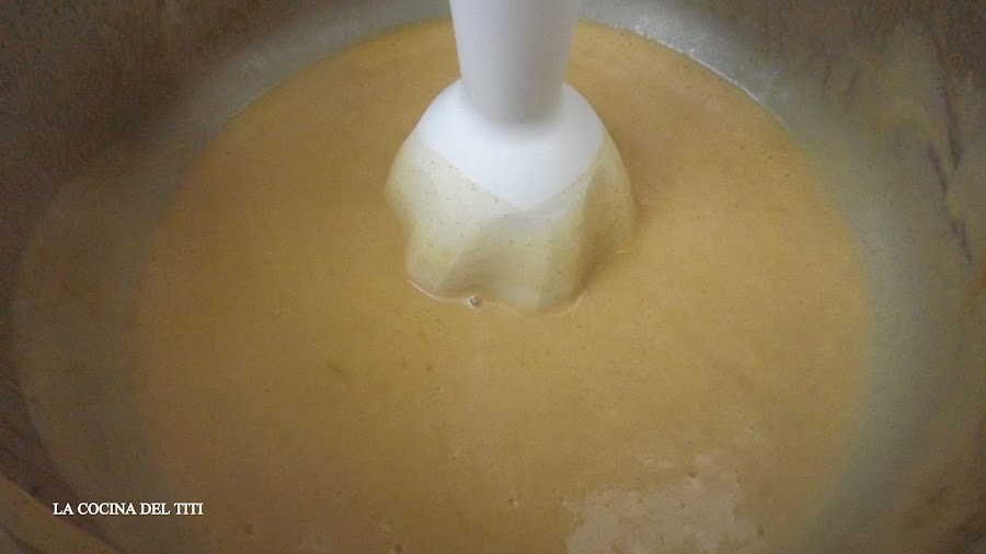 3º Retiramos las patatas, guindillas y laurel, pasamos la salsa por la batidora
