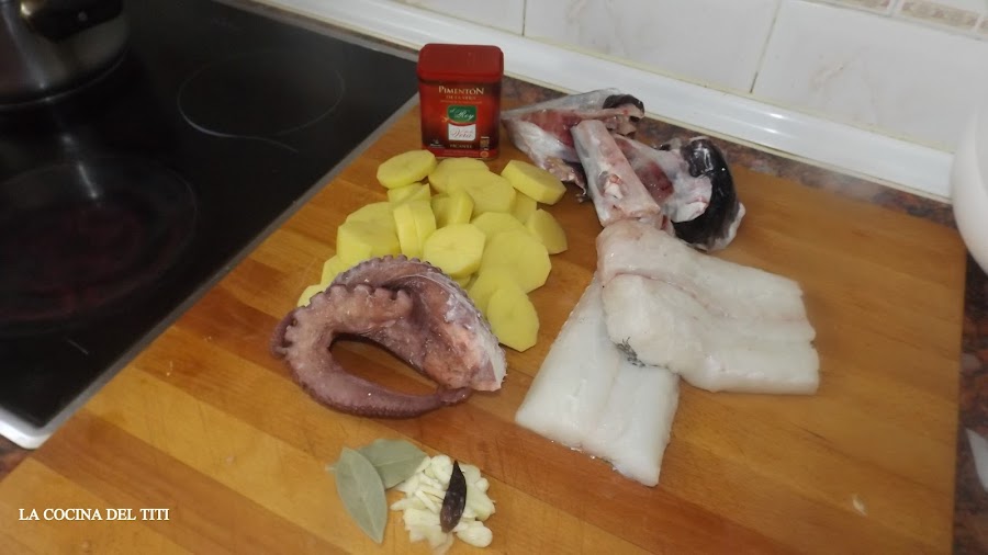 Vamos a cocinar unas patatas panaderas cocinandolas con un caldo de las espinas y cabeza de la merluza, haremos la merluza a la plancha, le pondremos el pulpo en laminas finas sobre los lomos de la merluza y naparemos con la salsa pasada por la batidora y colada.