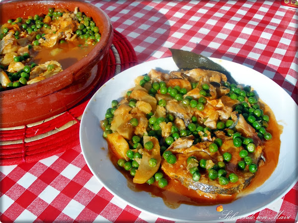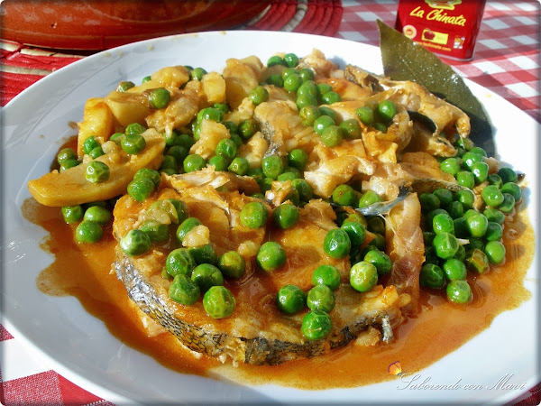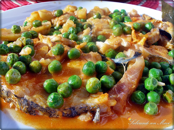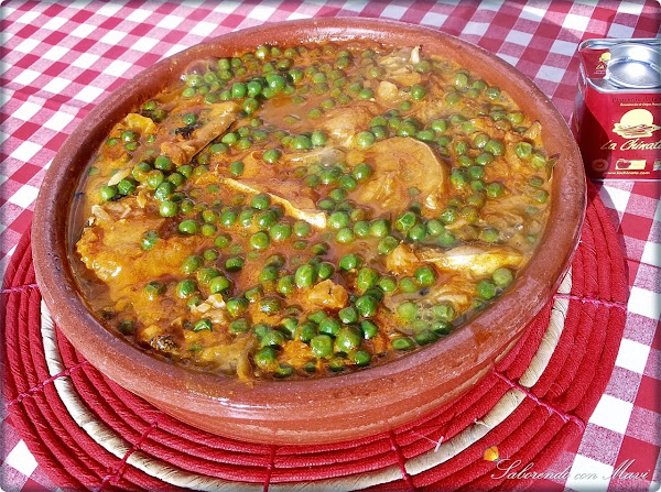 Ahora solo falta añadir los guisantes y el caldo de pescado. Dejar pochar a fuego medio 10 minutos y ya está!!