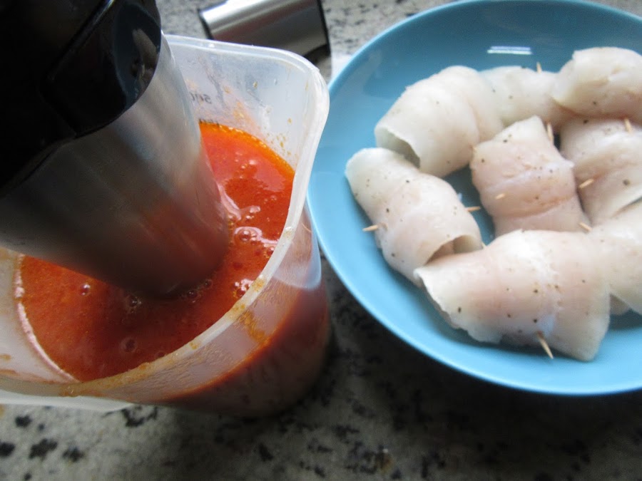 1- Salpimentar los filetes y enrollar, cerrar con palillos.. Reservar.