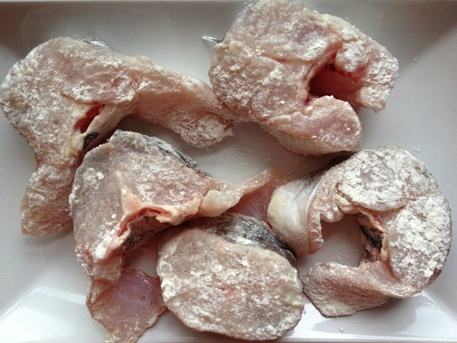 4 Una vez saladas, los pasamos por harina.