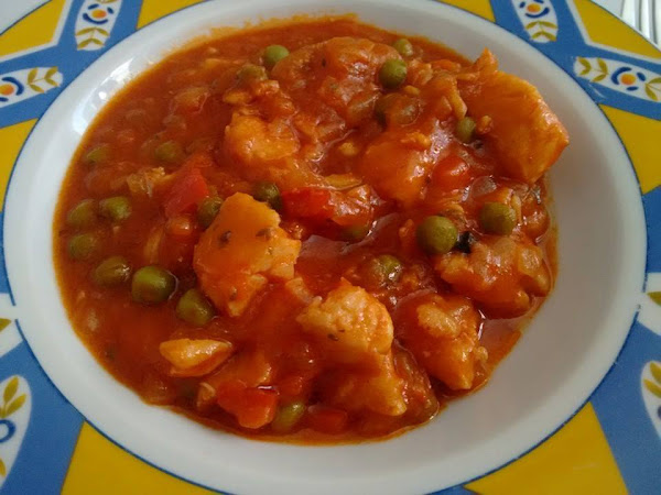 Ponemos la merluza previamente salpimentada, cortada a tiras de unos 2 centímetros, añadimos un poco de orégano y perejil seco, rehogamos unos minutos y añadimos el vino, dejamos reducir unos minutos, moviendo para que no se nos pegue.