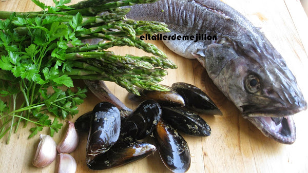 Si queda muy espesa la salsa después de que se abran los mejillones porque estos sueltan agua, yo le añado agua de la cocción de los espárragos.