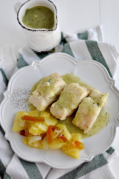 Si habría que puntuar esta merluza, sería con un sobresaliente porque la salsa verde le aporta toda la gracia y sabor para dejar de ser una simple merluza sin quitarle absolutamente nada, sólo potenciar. Y si hay que puntuar las patatas panaderas no podría porque no hay guarnición que me guste más que unas patatas panaderas.