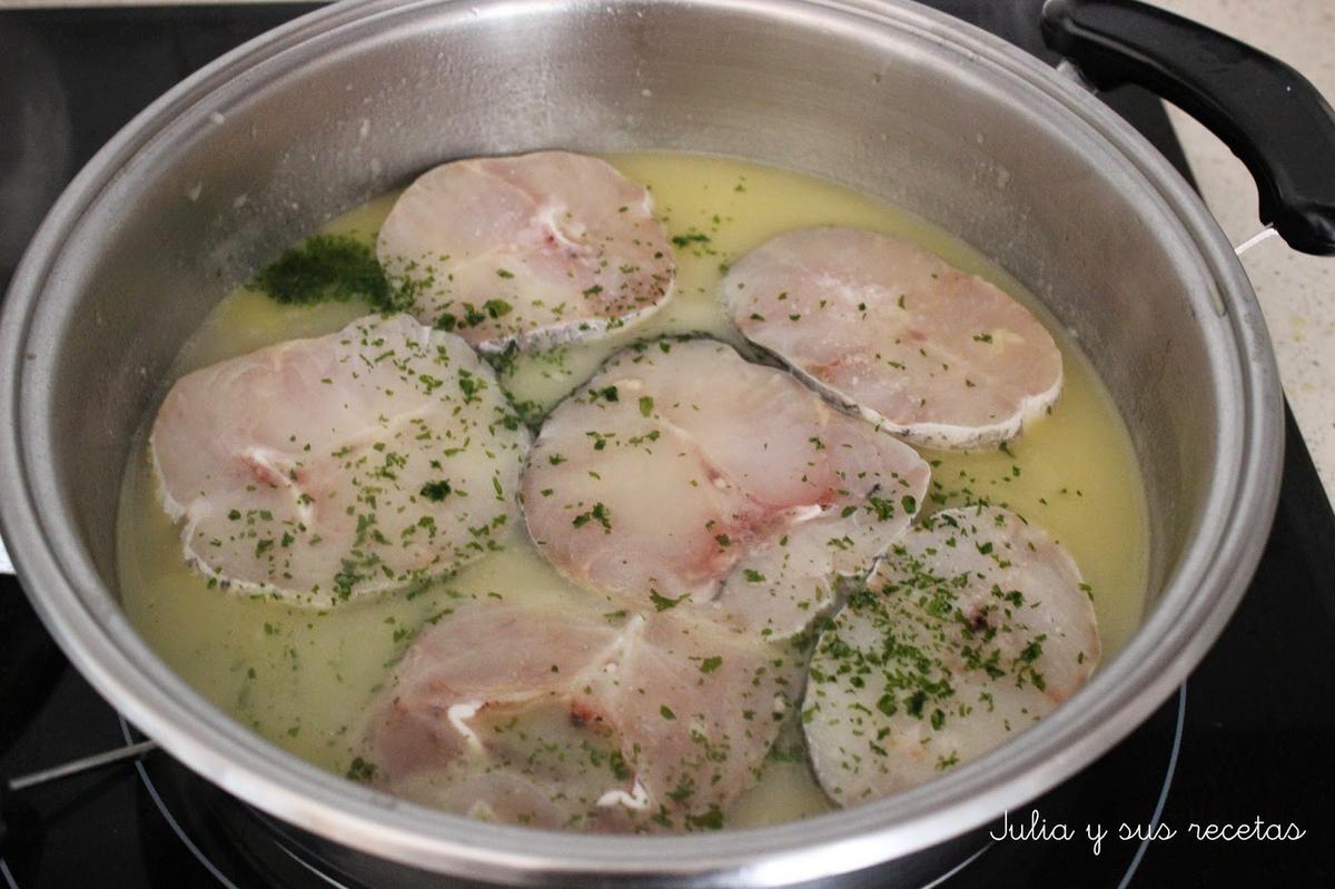 - 4 rodajas de merluza si son grandes, mas, si son pequeñas