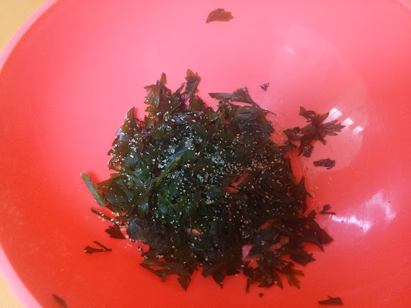 En un bol echamos un puñado de ajo en polvo y perejil.