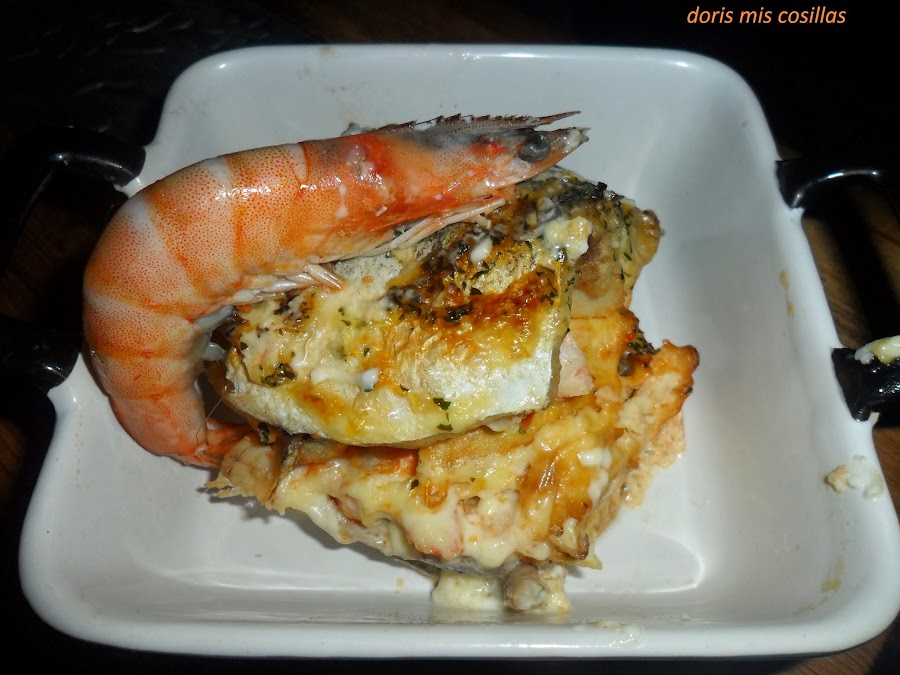 Llevamos al horno hasta verla cocida y doradita, pero con cuidado de no pasarnos para que no quede seca la merluza.