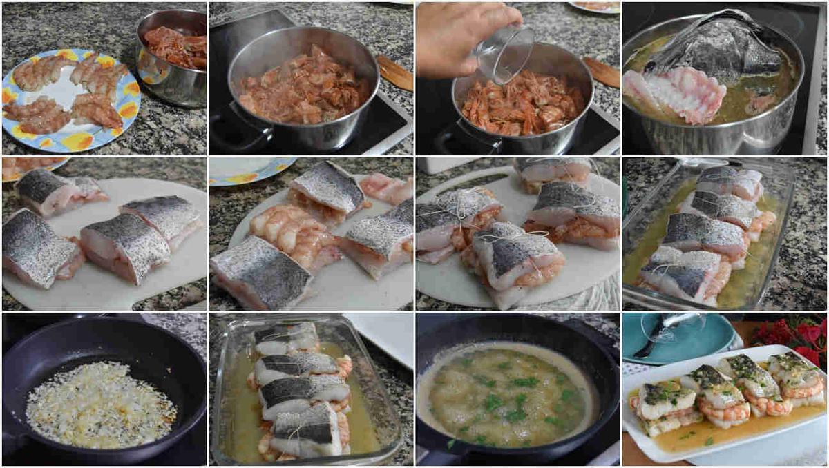 Elaboración de la merluza rellena de gambones muy fácil: