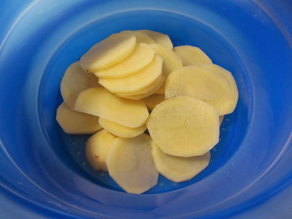 (En la receta original, se fríen las patatas, con unas cebollitas).
