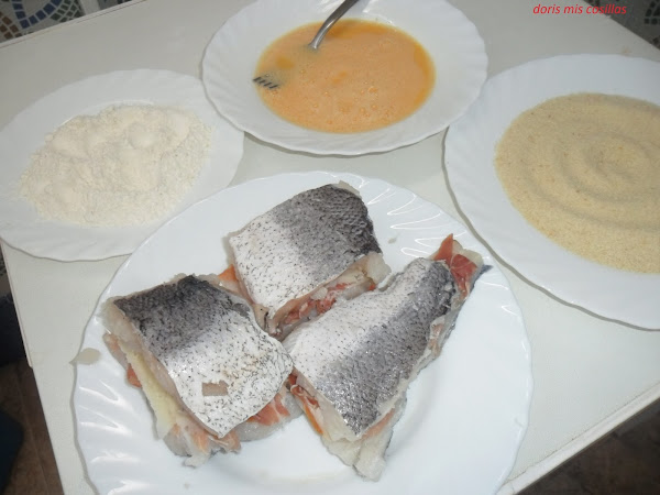 Con esta mezcla rellenamos los trozos de merluza y tapamos con la otra tapa.