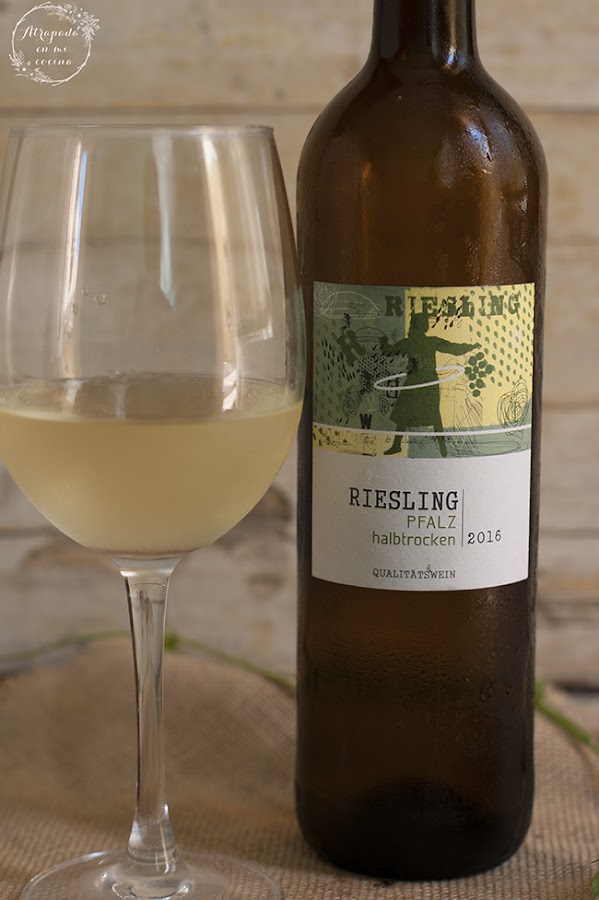 Lo hemos acompañado de un vino blanco alemán de la variedad Riesling, lo hemos comprado en LIDL a muy buen precio, alrededor de 4 euros, y os lo traigo por que es de los vinos alemanes que he tomado por aquí que me ha gustado más. De hecho ya hemos comprado varias veces la botella y es ideal para combinar con estos platos de pescado y marisco. Un conjunto de 10, sin duda.