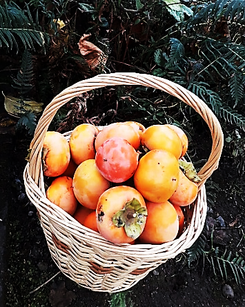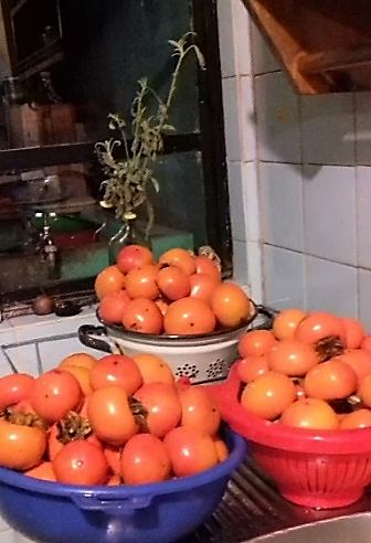 Amigas, les presento al árbol del Mancaqui que tenemos en casa y que cada año nos deleita con sus frutos, ya sea para comerlos cuando toman color o ya maduros, o en diversos postres y también en mermeladas. Además de verse precioso en el árbol, aunque ya hayan caído todas sus hojas.