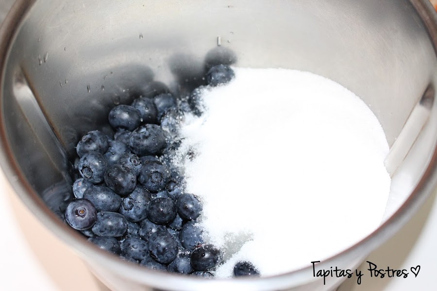 Ponemos los arandanos, el azucar y el zumo de limón en el vaso