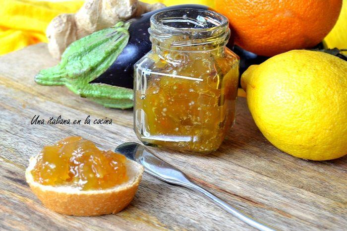 En el caso de esta receta de mermelada me llamó la atención el hecho que estuviera hecha con berenjenas…”¿¿Con berenjenas??” me pregunté “Ésta la tengo que hacer”. Que decir, esos amores a primera vista para mi siempre triunfan, cuando la he preparado en casa he quedado realmente sorprendida y extasiada por lo rica que es. Los cítricos y el jengibre le aportan un olor y sabor muy fresco que hacen de esta mermelada tan original sea algo realmente único. No sé si tú habrás probado nunca algo parecido, para mi ha sido un verdadero descubrimiento.