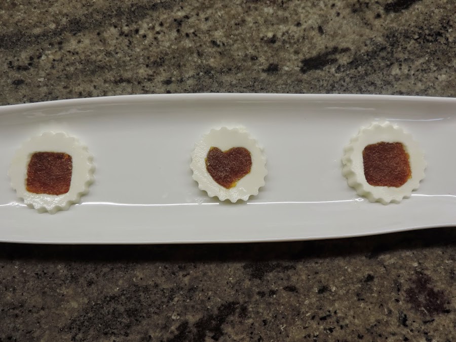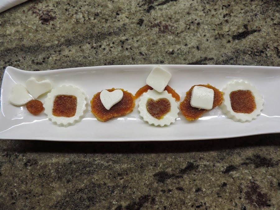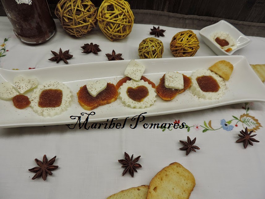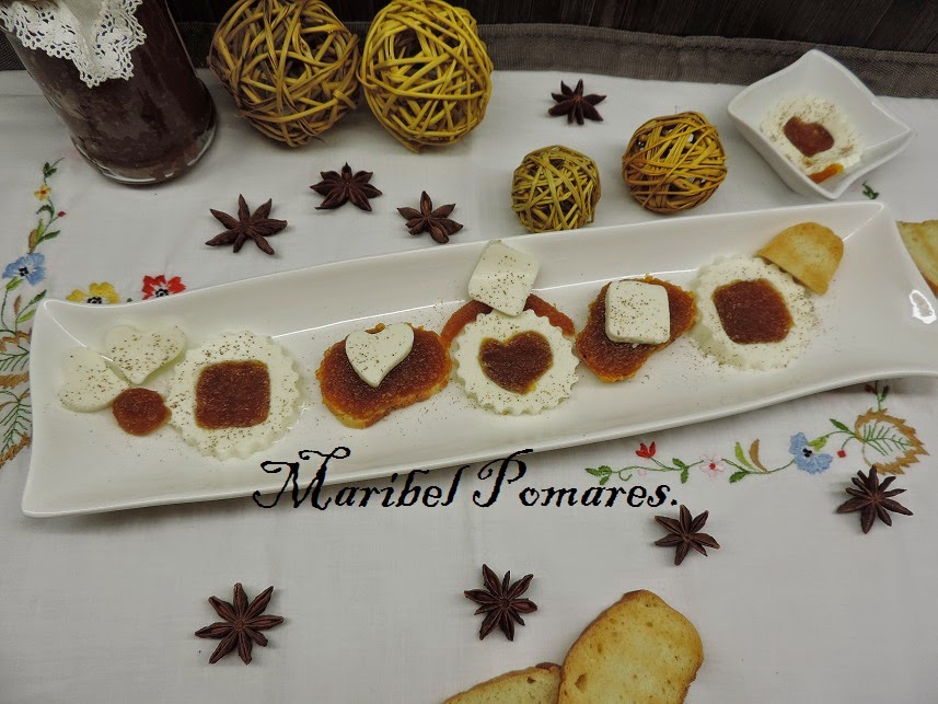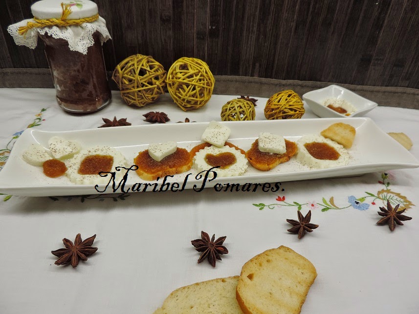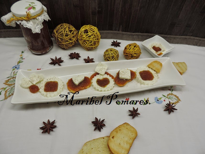 He puesto en el plato la parte del queso y he rellenado con mermelada de calabaza.