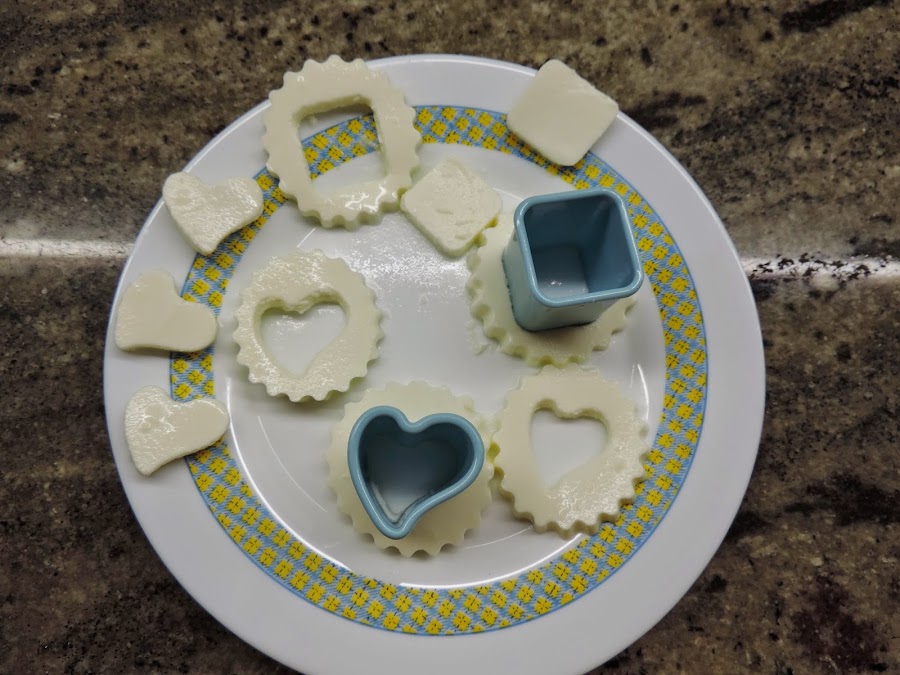 He cortado un poco de queso fresco y con un corta pasta he echo unas decoraciones.