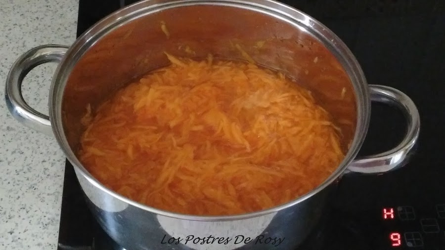 - Una vez comenzada la ebullición, bajamos a fuego medio y dejamos reducir unos 20 minutos (cuidado de no pasarse con el tiempo pues se carameliza y se queda tiesa).