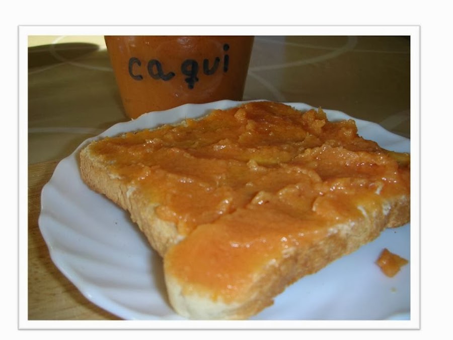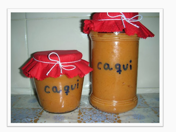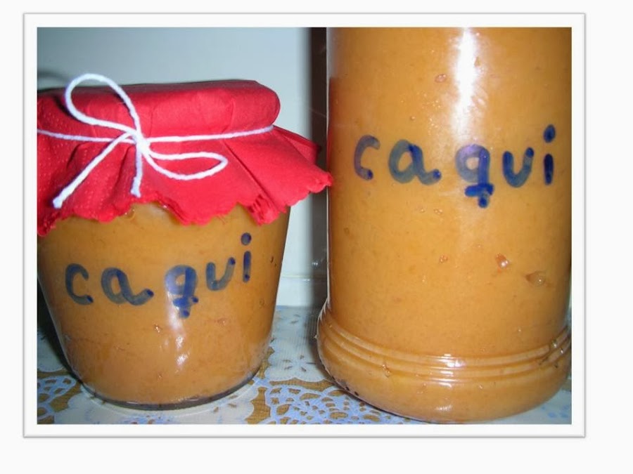 1- Lavar los caquis bien, pelarlos, trocearlos y pesarlos, continuación los pondremos en un baso batidor, añadiremos la manzana pelada y troceada, el azúcar y el zumo de limón, batimos hasta que tenga una consistencia como una papilla ( si se desea se pueden quedar trocitos para que no este tan triturada).