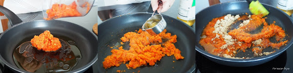 Incorporar la pasta triturada y dejar que se vaya cocinando durante unos 10 - 12 minutos aproximadamente, removiendo de vez en cuando para que se haga uniformemente.