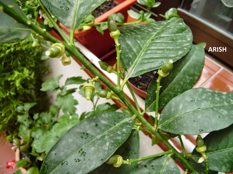 y poco después se cayeron los pétalos y ahí estaban los mini-limoncitos empezando a crecer.....pero un día...¡¡oh my good!! una gran tormenta a principios de Junio hizo tal destrozo en él que sólo dejó en las ramas 2 limoncitos..... y yo que auguraba una gran cosecha.... en fin la ilusión es lo último que hay que perder.... y pasaron días y semanas y meses y los dos limoncitos crecieron y engordaron y maduraron y mi ilusión se hizo realidad