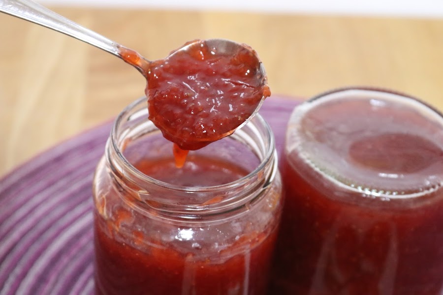 Dejar enfriar, llenar hasta el máximo los tarros esterilizados, taparlos y ponerlos boca abajo 24 horas para que no cojan aire y hagan vacío.