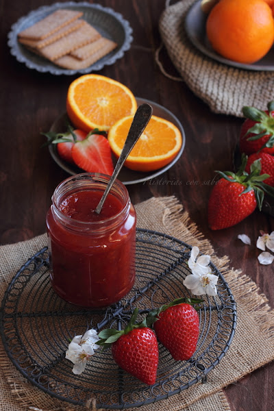 Esta mermelada es realmente deliciosa, porque a parte de que lleva mis dos frutas favoritas, las fresas y la naranja, el toque de agua de azahar le proporciona un sabor realmente exquisito.
