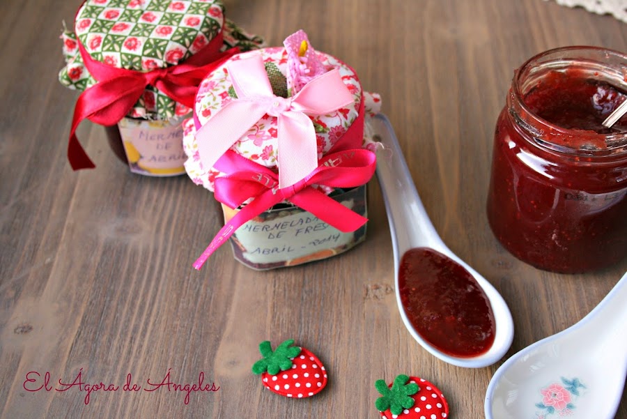 La semana pasada vi en el Ágora de Ángeles una maravillosa mermelada de fresa, presentada en unos tarros preciosos, me enamoré al instante y decidí prepararla de inmediato. El resultado ha sido el esperado (tengo que comprar más fresas para volverla a preparar), una deliciosa mermelada en su justo punto de dulzura.....INGREDIENTES PARA 500 GRAMOS DE PRODUCTO FINAL: 500 gr. de fresas limpias y sin ...