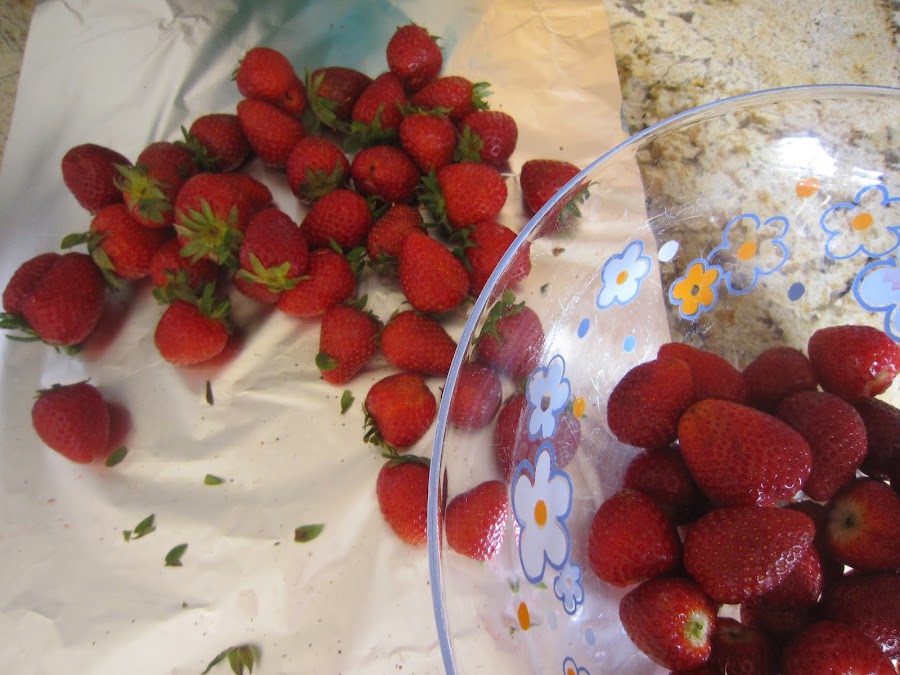 Retirar el pedúnculo a las fresas y lavar en un colador bajo el agua del grifo. No sumergirlas.